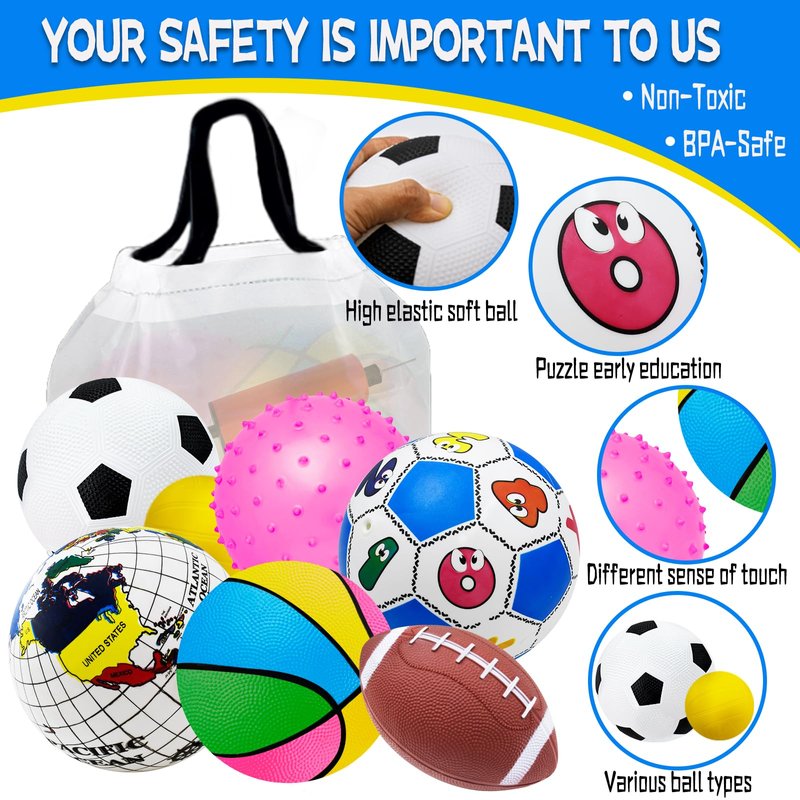 - PLAY ANYTIME, SAFE: It has passed the official CPC safety certification and complies with toy safety requirements. Perfect for indoor and outdoor play,children will not be bored when traveling outdoors, perfect for practice and outdoor play - exercise learning, sports fun? Yes - have fun and love sports! Give your child a fun set of ball toys for kids.