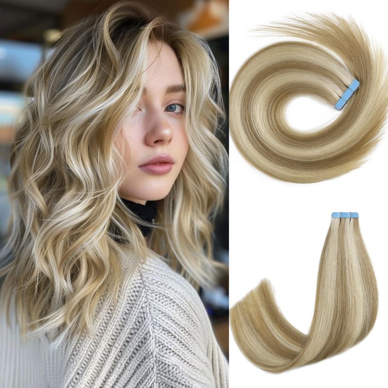 LADY MIRANDA 14 Inch Tape in Hair Extensions Human Hair 40g/20pcs Blonde Hair Extensions Soft Hair Extensions Real Human Hair Invisible Tape in Hair Extensions (9A/60, 14 Inch)