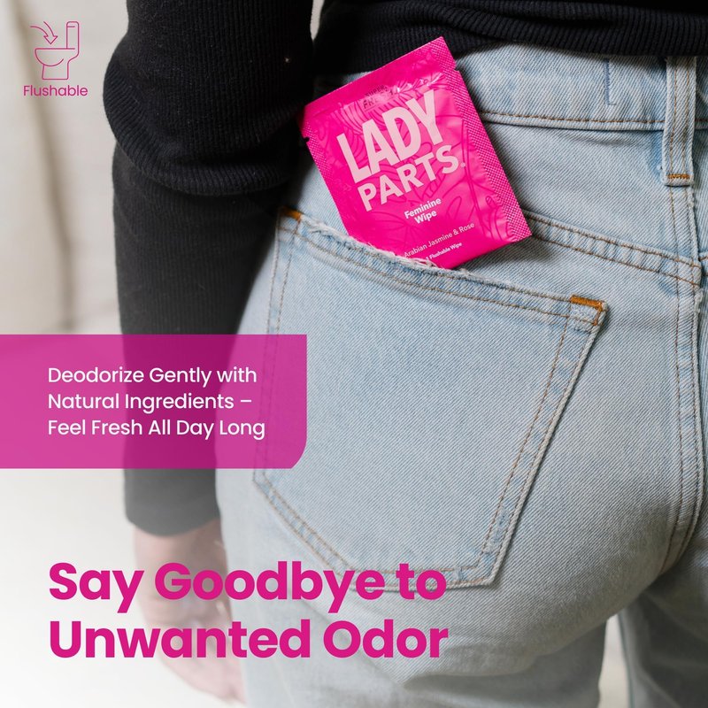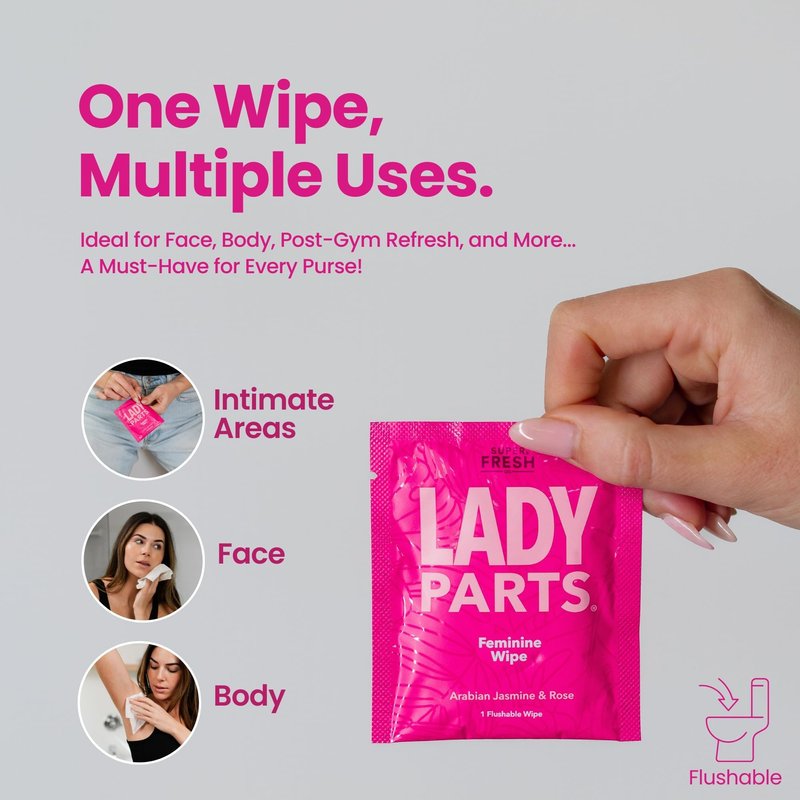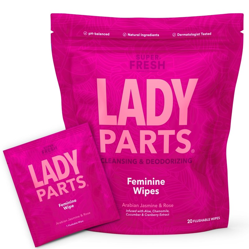 Lady Parts Feminine Wipes - Flushable Wet Wipe for Women - pH Optimized for Privates, Body, Booty, & Face - Good for Travel & Intimate Areas - Stay Fresh & Clean - 20 Wipes
