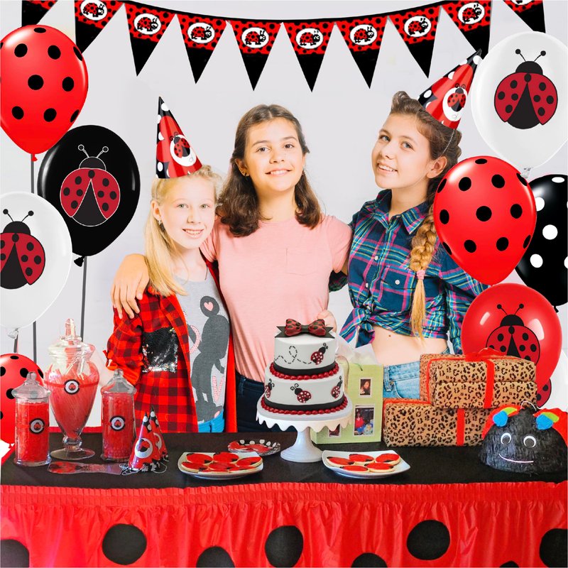 - Versatile Ladybug Party Decorations - These latex balloons work great as part of a kit, arch, or garland, featuring iconic red, white, and black ladybug designs for creative Miraculous Ladybug party decorations.