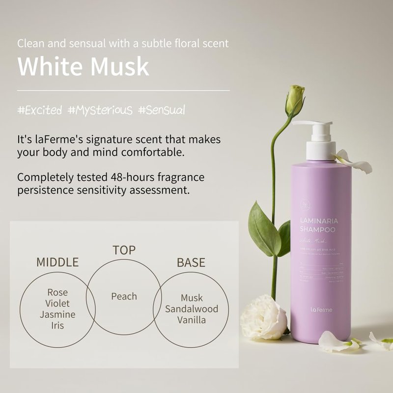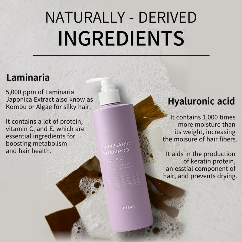 laferme Laminaria Thickening Shampoo with Organic ingredient, Moisturize Scalp for dandruff, Strengthening & Hydrating hair, Sulfate & Paraben free, For Women & Men (16.9 FL. OZ., White Musk)