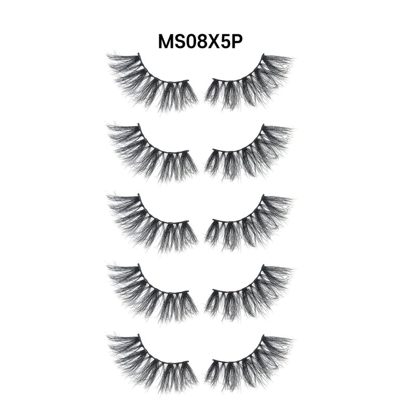 Laflare 25MM Silk Mink Max Volume 3D False Eyelashes, Reusable Fluffy Natural Looking False Lashes, Wispy Lashes 5 Pairs Value Pack (MS08X5P)