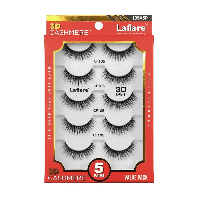 Laflare 3D Cashmere False Eyelashes Multipack, Ultra Soft, Glam, Luxurious, Cruelty-Free, Reusable, Fake Eyelashes 5 Pairs Value Pack (105X5P)
