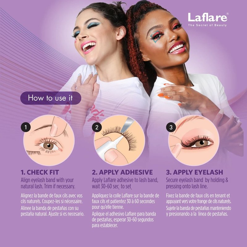 2. Apply adhesive Apply Laflare adhesive to lash band, wait 30-60 seconds to set.
