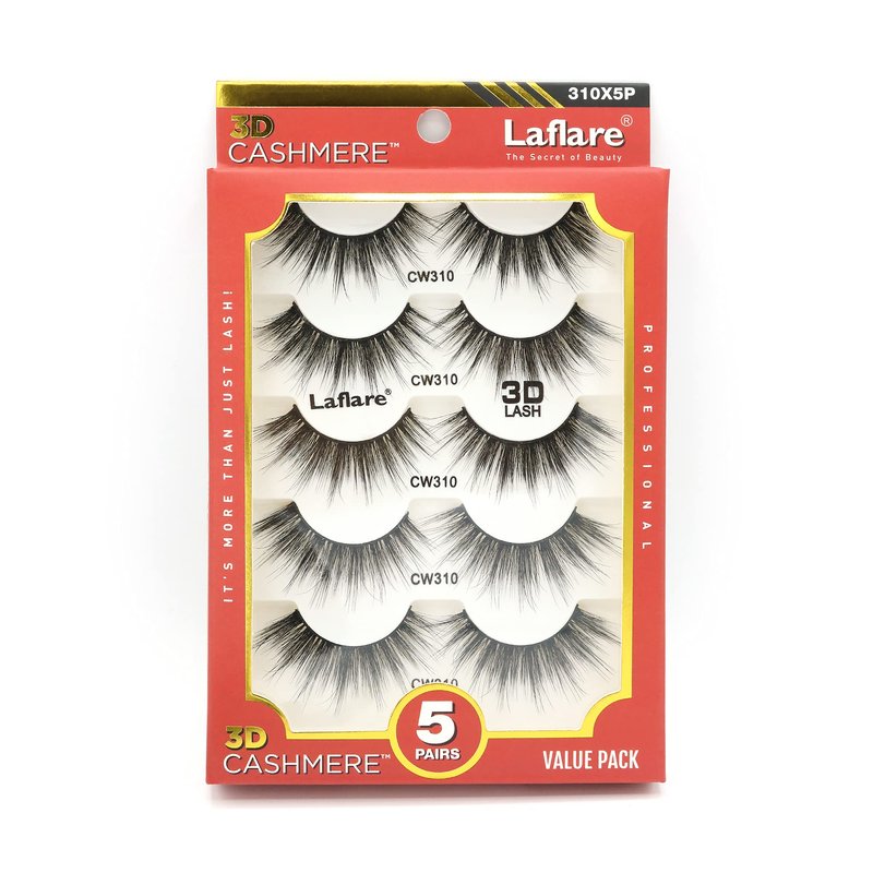 Laflare 3D Cashmere False Eyelashes Multipack, Ultra Soft, Glam, Luxurious, Cruelty-Free, Reusable, Fake Eyelashes 5 Pairs Value Pack (310X5P)