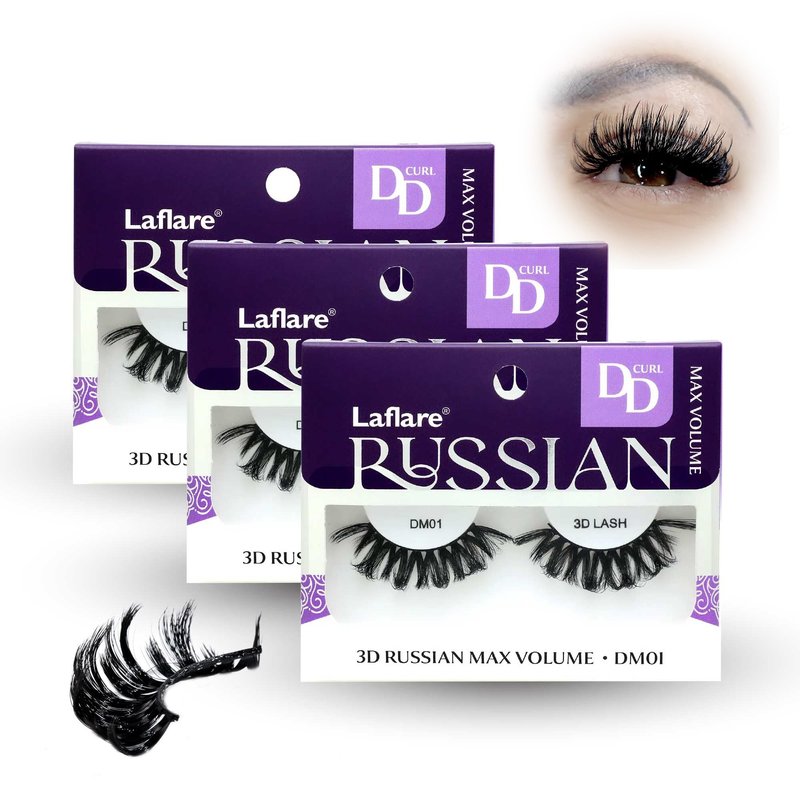 Laflare 3D False Eyelashes Russian Max Volume Strip Lashes | Fluffy, Wispy, Lightweight | Faux Mink Eyelashes Extension D Curl Wispy Handmade Soft Reusable 3 Packs Value Combo. (FDM01X3C)