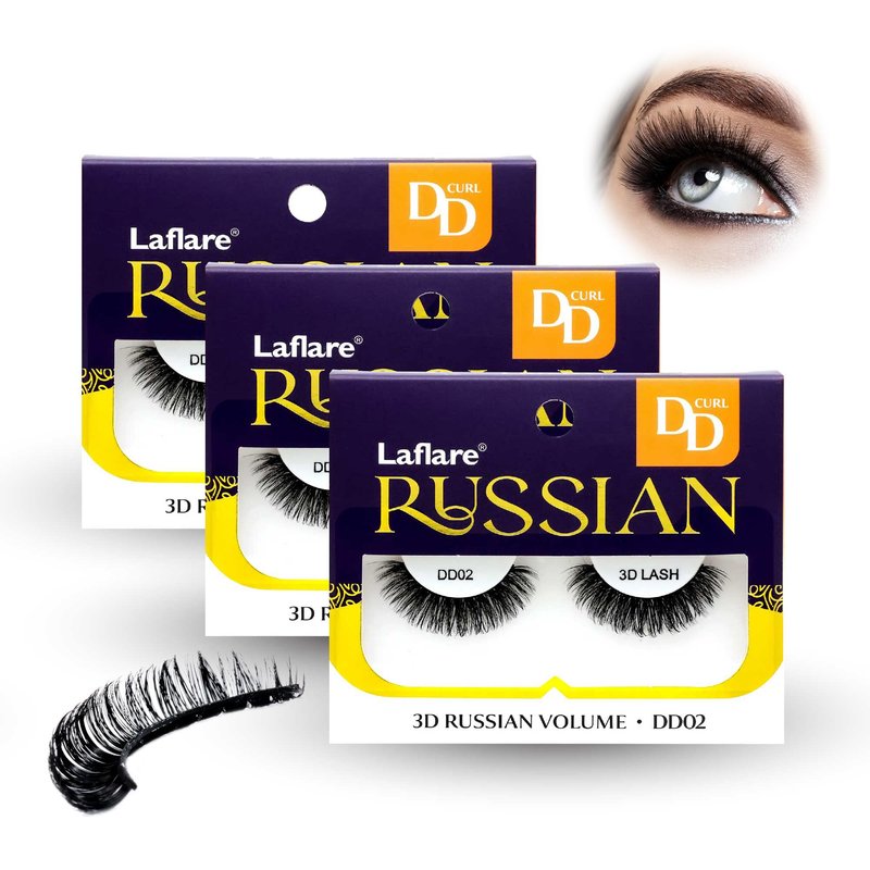 Laflare 3D False Eyelashes Russian Volume Strip Lashes | Fluffy, Wispy, Lightweight | Faux Mink Eyelashes Extension D Curl Wispy Handmade Soft Reusable 3 Packs Value Combo. (FDD02X3C)