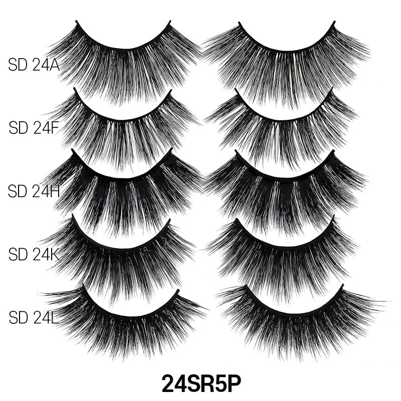 Laflare 5 Styles Premium Silk Lashes 3D Faux Mink Eyelashes Multipack, Light, Natural Looking, Professional Easy to Apply Eyelashes in a Knitted Style 5 Pairs Mixed Value Pack (24SR5P)