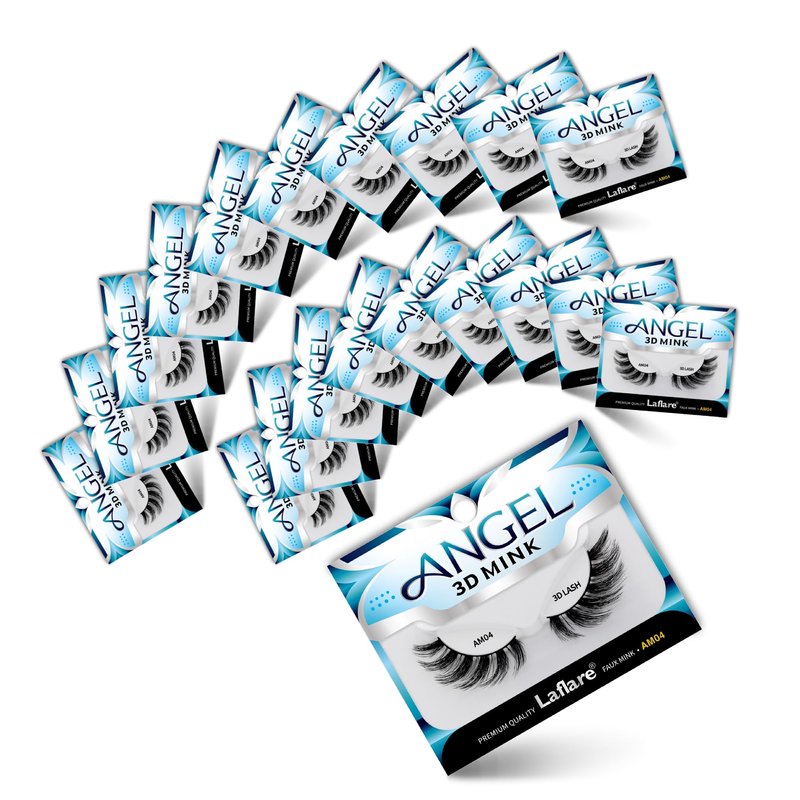 Laflare Laflare® 3D MINK ANGEL Eyelashes,20 Single Packs Luxury Synthetic False Eyelashes,16mm Dramatic Look Maximum Volume. Flare shape, Reusable Faux Lashes (AM04X20P, 20, Count)