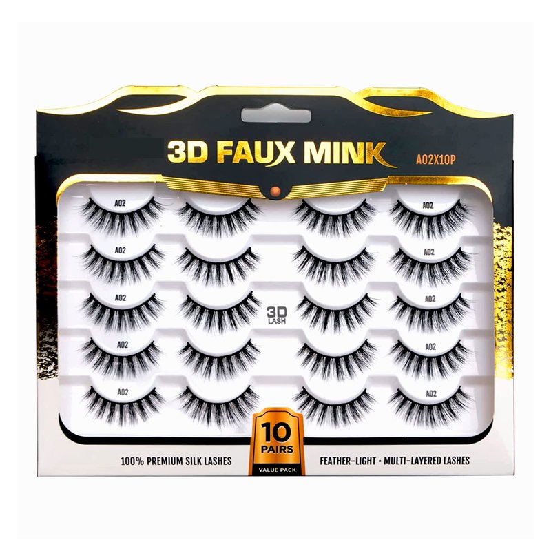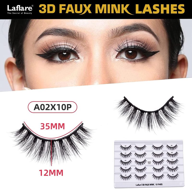 Laflare Premium Silk Lashes 3D Faux Mink Eyelashes Multipack, Light, Natural Looking, Professional Easy to Apply Eyelashes in a Knitted Style 10 Pairs Jumbo Pack (A02X10P)