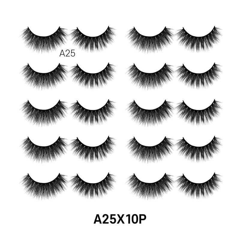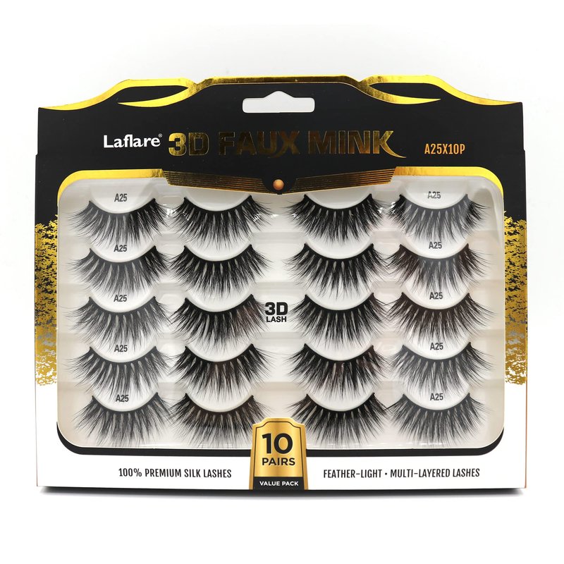 Laflare Premium Silk Lashes 3D Faux Mink Eyelashes Multipack, Light, Natural Looking, Professional Easy to Apply Eyelashes in a Knitted Style 10 Pairs Jumbo Pack (A25X10P)