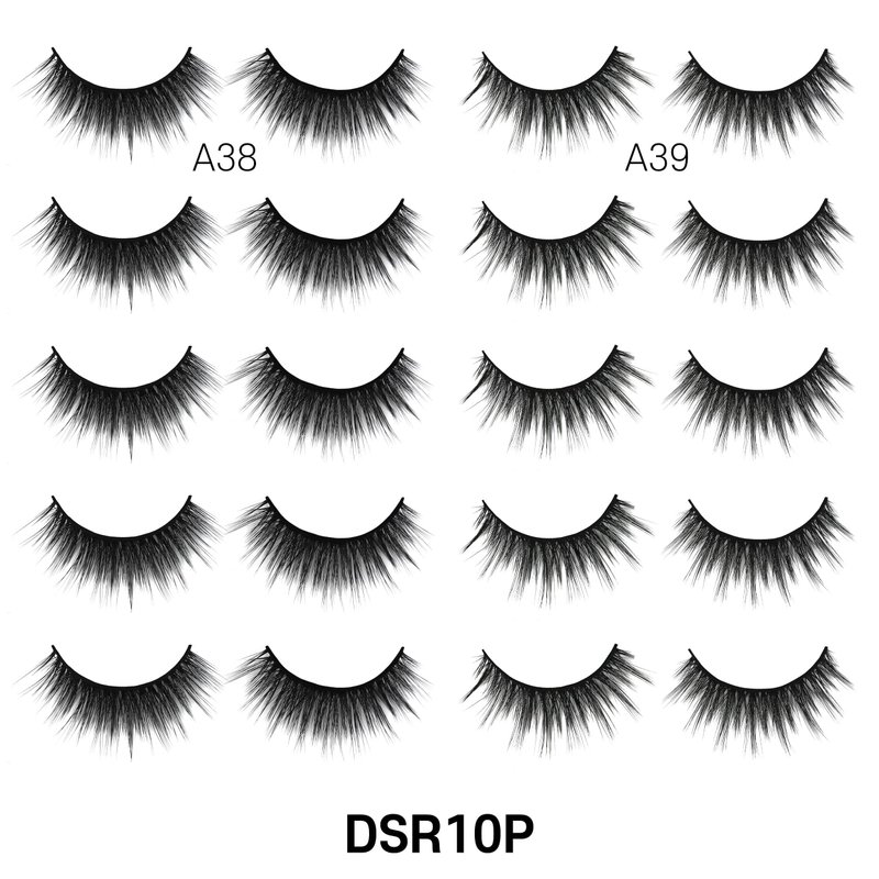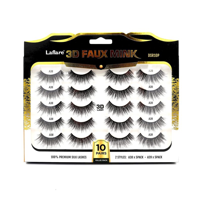 Laflare Premium Silk Lashes 3D Faux Mink Eyelashes Multipack, Light, Natural Looking, Professional Easy to Apply Eyelashes in a Knitted Style 10 Pairs Jumbo Pack (DSR10P)