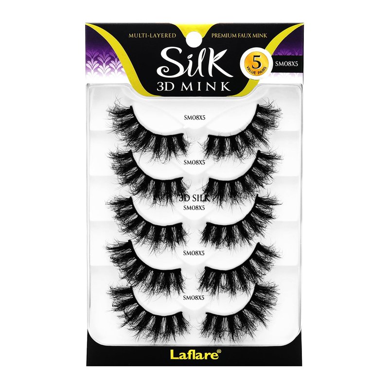 Laflare Silk Mink 3D False Eyelashes Light, Fluffy Natural Looking False Lashes, Wispy Lashes 5 Pairs Value Pack (SM08X5P)