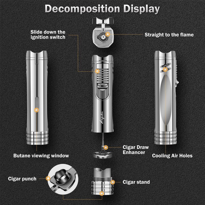 - đ„ăALL IN ONE LIGHTERă The Cigar Lighter is Equipped with a Cigar Puncher,cigar Draw Enhancer, Cigar Stand. It Can Be Removed and Used Independently.the All-in-one Lighter Makes Your Travel Easier Because It Has Everything You Need to Enjoy a Cigar.