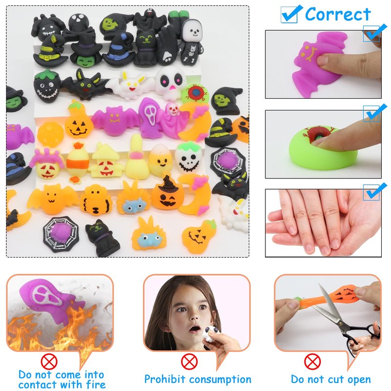 - 【Perfect Halloween Gifts】 The Halloween mochi squishys are perfect set for Halloween Decoration, Halloween Party, Halloween giveaways, Halloween prizes,Goodie bags,Halloween gift,Trick or Treat, Class Exchange,Halloween Miniature, Novelty Toys.