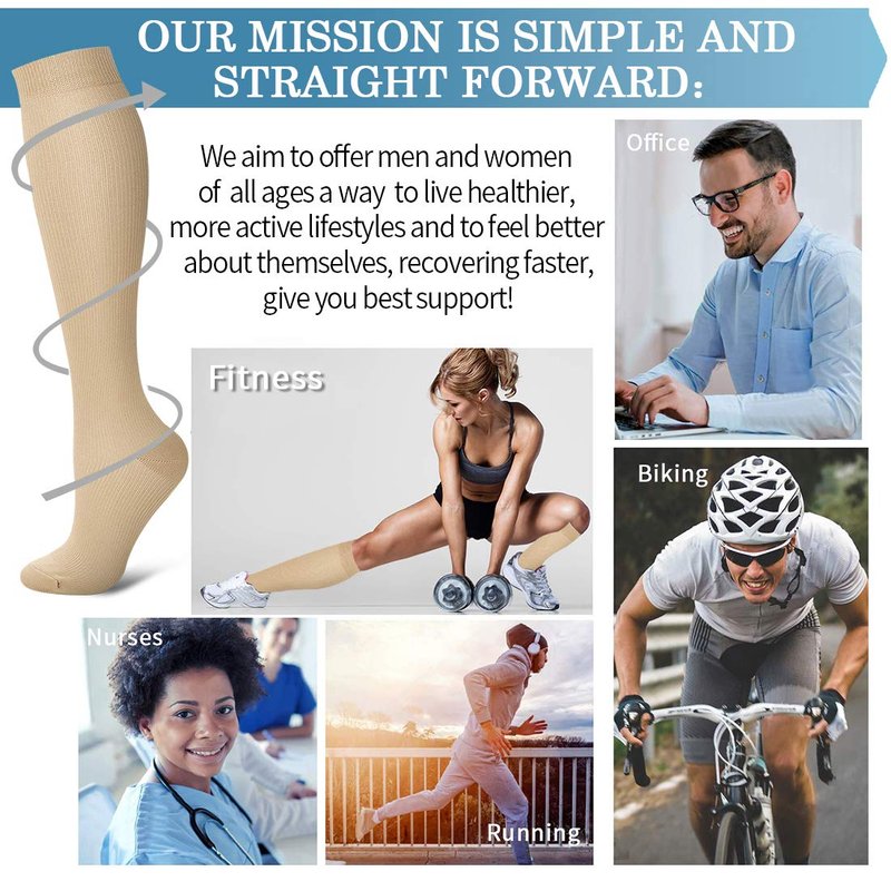 - PERFECT FOR EVERYONE-Ours premium compression socks for all your favorite activities.These socks will keep doing their job while you focus on your daily routine,whether you're driving the kids,running around for meetings at work,doing chores at home,or doing anything else at all. everyone can benefit from the power of compression to feel their best and conquer their day, every day.Our socks perfect for everyone regardless of age,gender and location!