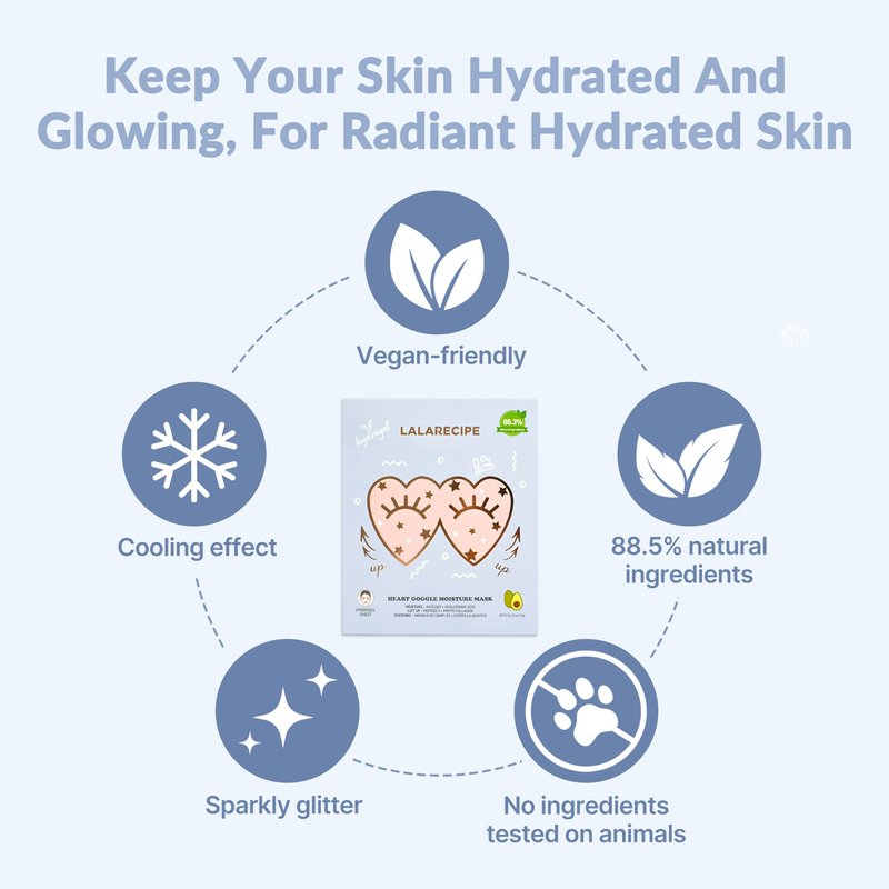 - ✅ GLAMOROUS UNDER EYE MASK. These heart-shaped eye gel patches contain a rich infusion of moisturizing components designed to deeply care for delicate skin and fine lines under the eyes, cheeks, and nose areas. You can also enjoy luxurious glitters for a shimmering radiance upon removal.