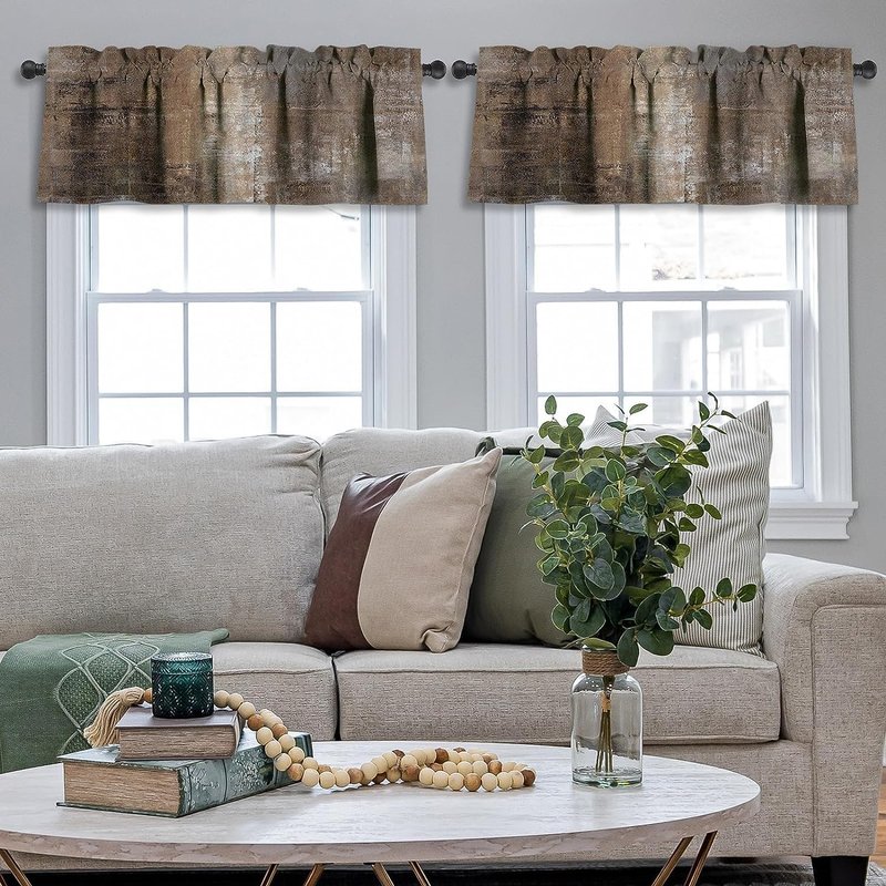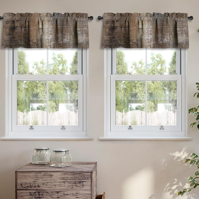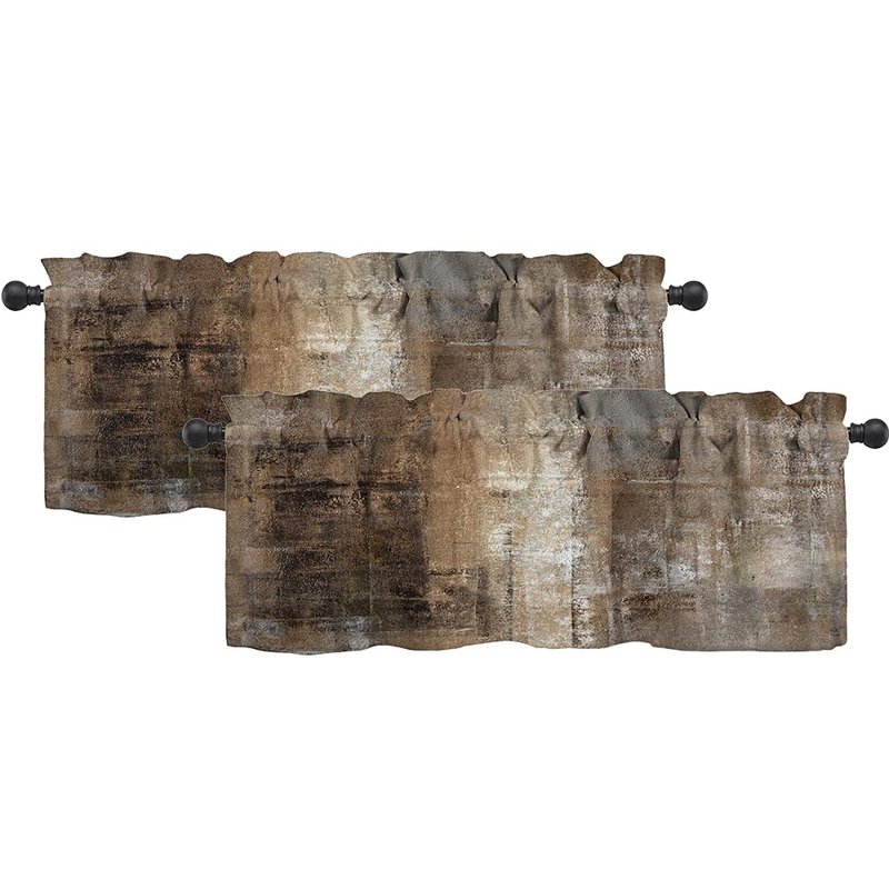 LALILO Brown Grey Kitchen Curtains Abstract Art Valances for Windows Blackout Window Treatment Valances Rod Pocket Curtain Valance for Bathroom Bedroom Living Room Cafe,52 X 18 Inch,2 Panel