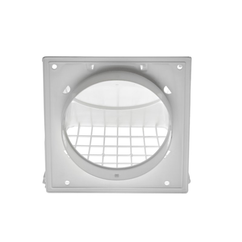 - DRYER VENT HOOD - White plastic preferred hood dryer vent with removable screen.
