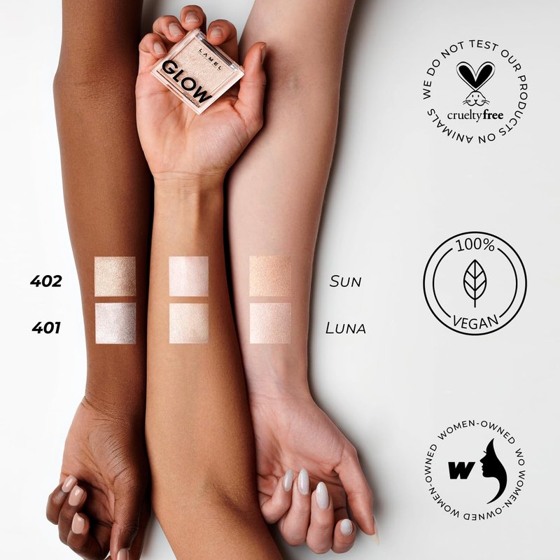 LAMEL Glow Highlighter: Face Make Up & Contour Palette in Deep, Vibrant Colors - Natural Shimmer - Compact Size & Perfect for Travel - Cruelty Free - 3.8gr/0.13 oz 401 (Luna)