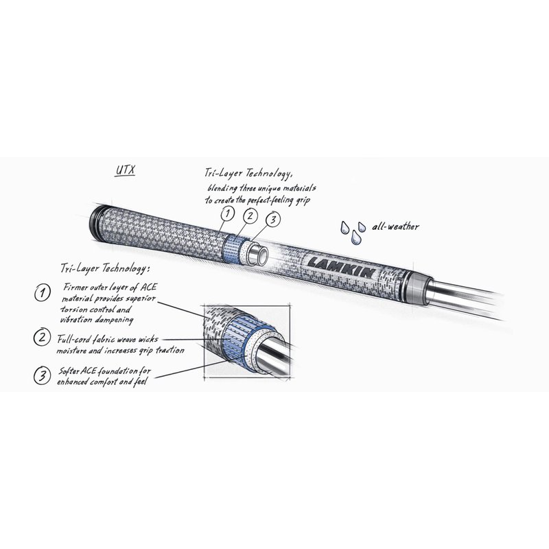 Lamkin UTx Cord Golf Grips, Swinging Grips, with Lamkin's Tri-Layer Technology, Solid Gray