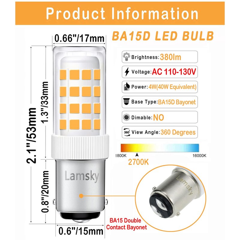 Standard BA15D Base LED Bulbs,easy to install.Use for sewing machine light,pendant light,vacuum cleaner light,reading lamp and desk lamp, etc.