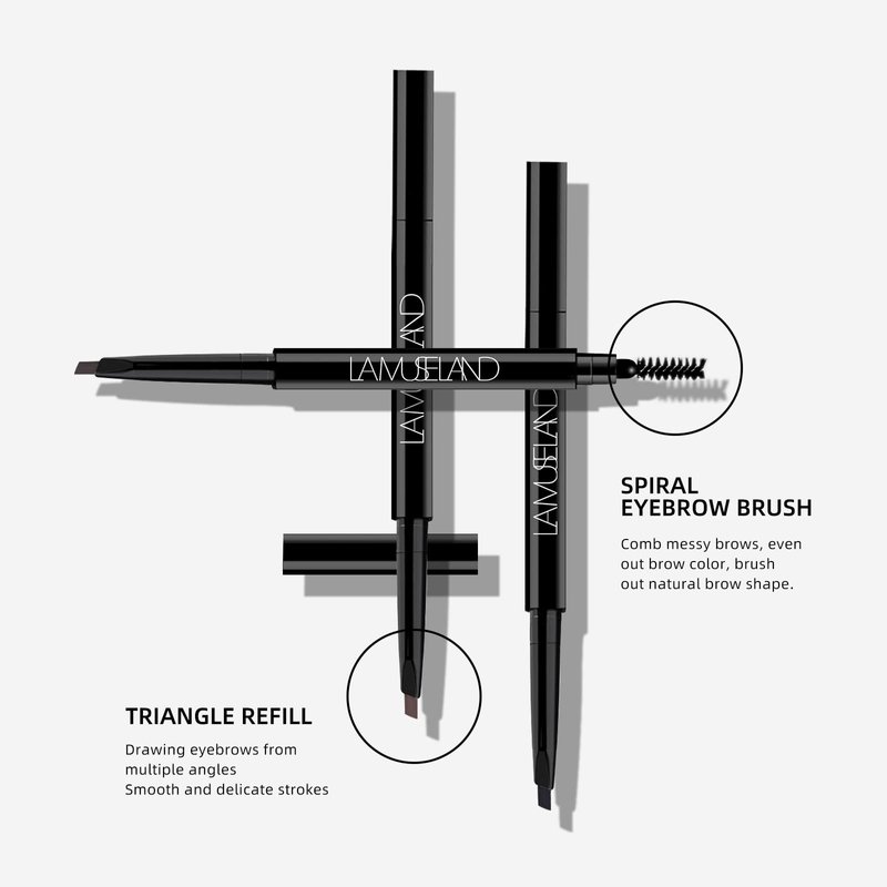 LAMUSELAND 3 Pcs/Set Eyebrow Pencil, Professional Make Up Definer Pen, Rotary Retractable Triangular Tip Eyebrow Pencil With Spoolie Brush, Waterproof Long-lasting Eye Brow Pencil, Easy Create Natural