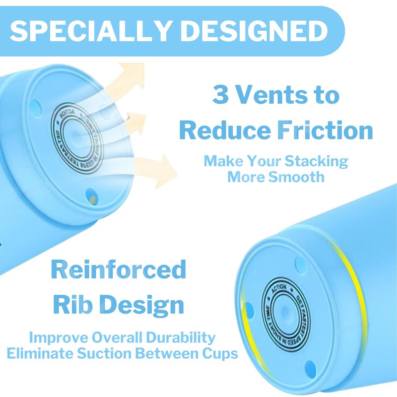 - THREE AIR VENTS FOR QUICK STACKING - Our stacking cup has 3 small air vents at the bottom, which can expedite the discharge of air to reduce air friction in rapid stacking and help you to compete with others from a vantage point!