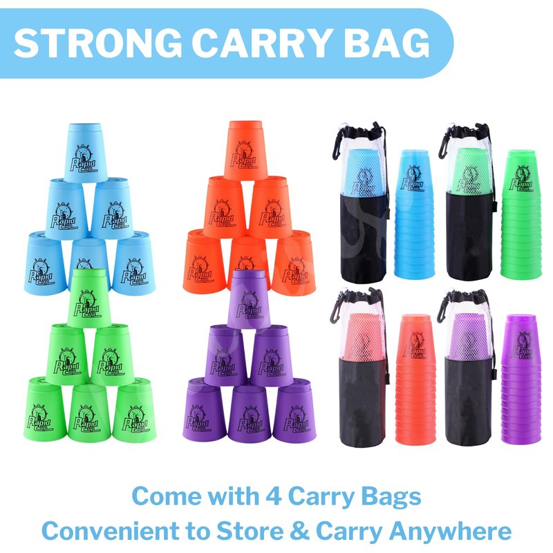 - HIGH QUALITY WITH MESH CARRY BAG - Qucik stacking cups made with quality plastic materials. Also the game stack cups comes with a storage bag which is great for helping them maintain their original shape and not get bent or damaged during delivery. Perfect for party games, present ideas for kids, and summer camp activities.
