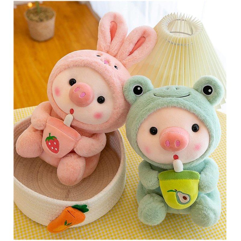 LANFIRE Pig Plush Pillow Pig Dressed Up As Frogs Tigers Rabbits Cute Plush Pillow Gifts for Boy Girl (12.9 in, Green)