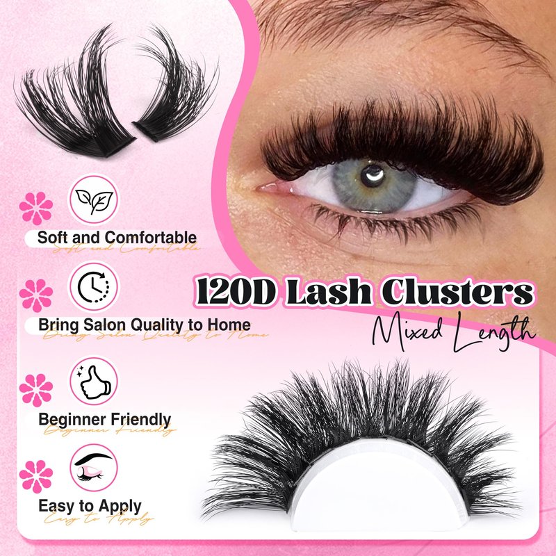 Different lengths of cluster lashes include bottom lash clusters individually offer you a myriad of ways to mach from everyday natural looks to dramatic evening or party make-up.