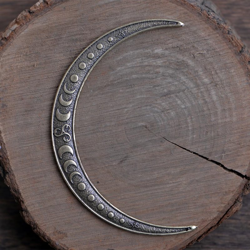 - Appearance Design: The width of the top ends of this Moon Hair Pin is 10 centimeters, featuring a loose and comfortable design suitable for various hairstyles and occasions. It is adorned with Viking and Knot festival patterns, adding a unique cultural charm to the headpiece, making it more eye-catching and exquisite.