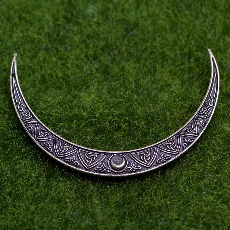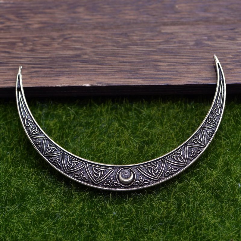 - Appearance Design: The width of the top ends of this Moon Crescent Hairpin is 10 centimeters, featuring a loose and comfortable design suitable for various hairstyles and occasions. It is adorned with Viking and Knot festival patterns, adding a unique cultural charm to the headpiece, making it more eye-catching and exquisite.