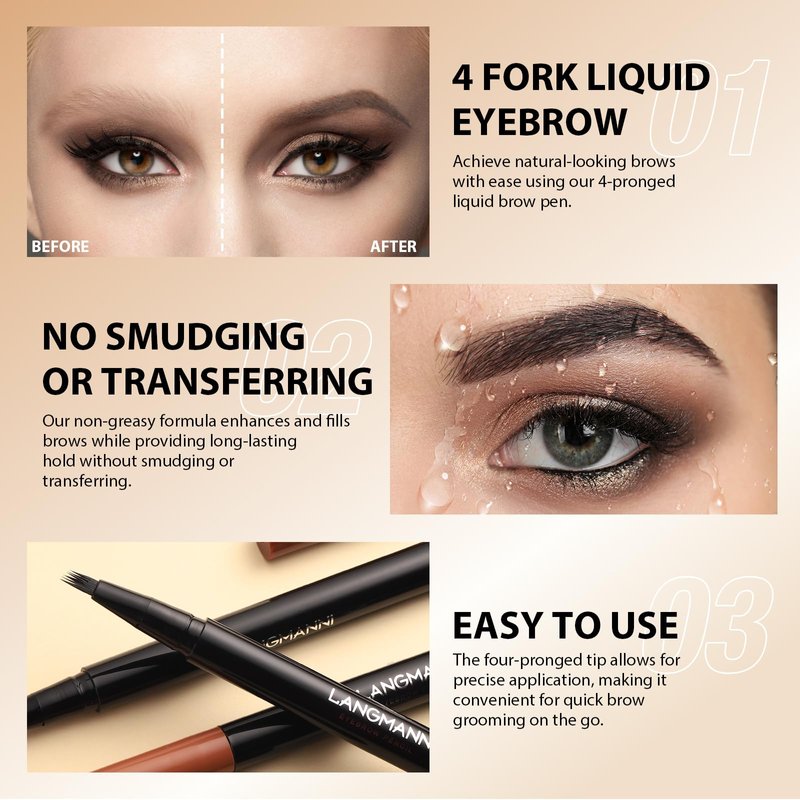 - 3、Waterproof & Easy to Wipe - The liquid of LANGMANNI eyebrow pencil is waterproof and easy to rub off. Don't rub your eyebrows too hard.