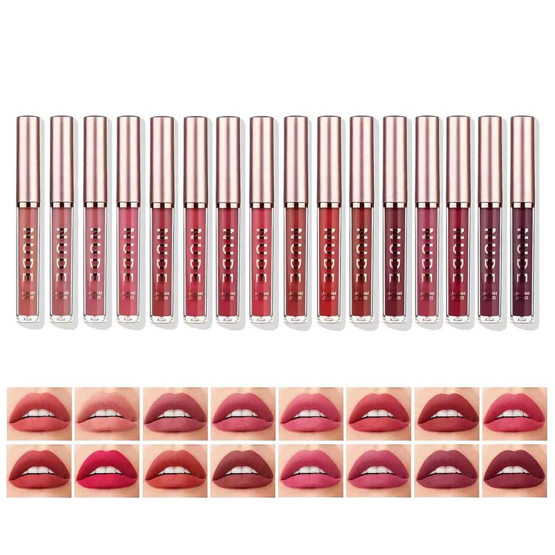 LANGMANNI Matte Liquid Lipstick Makeup Set Velvety Liquid Lipstick Long Lasting Durable Nude Lip Gloss Beauty Cosmetics Set for Girls and Women (16Pcs set)