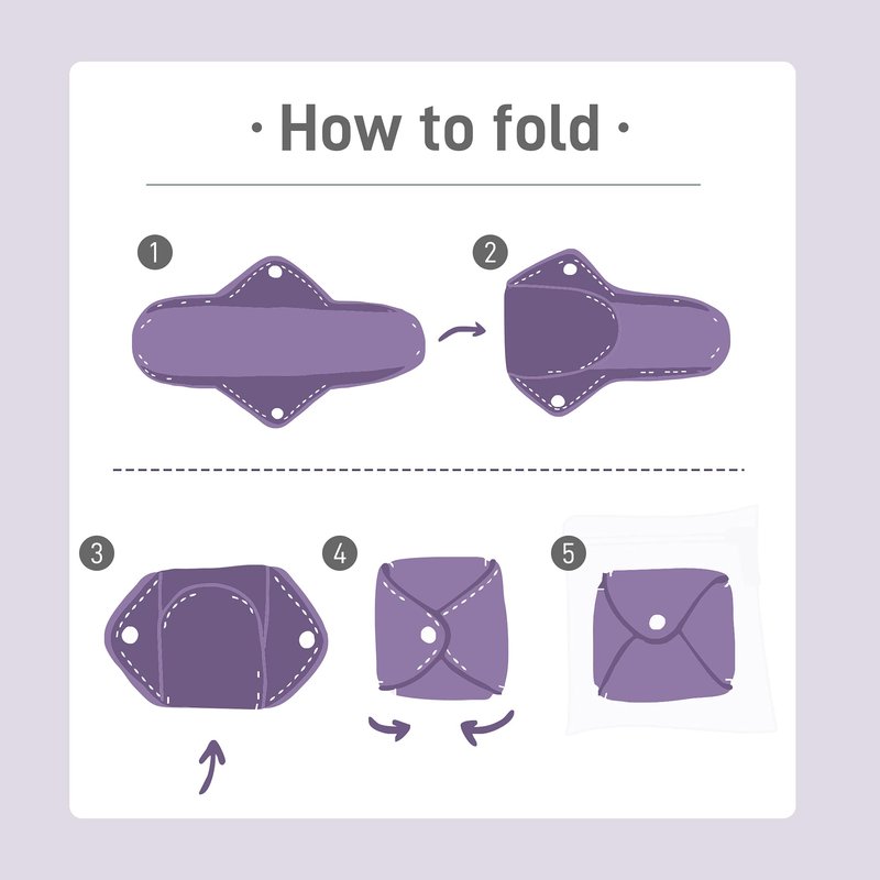 - TWO SNAPS DESIGN: This cloth sanitary pads stay firmly in place and absorb your menstrual flow so that slips and leaks are a thing of the past. Change panty liners every 2-6 hours or as needed. Reusable panty liners wrapped into the shape of a little envelope and buttoned up, then packed this reusable menstrual pads into the wet bag, unfold cloth pads when use or wash, nobody will know what it is.