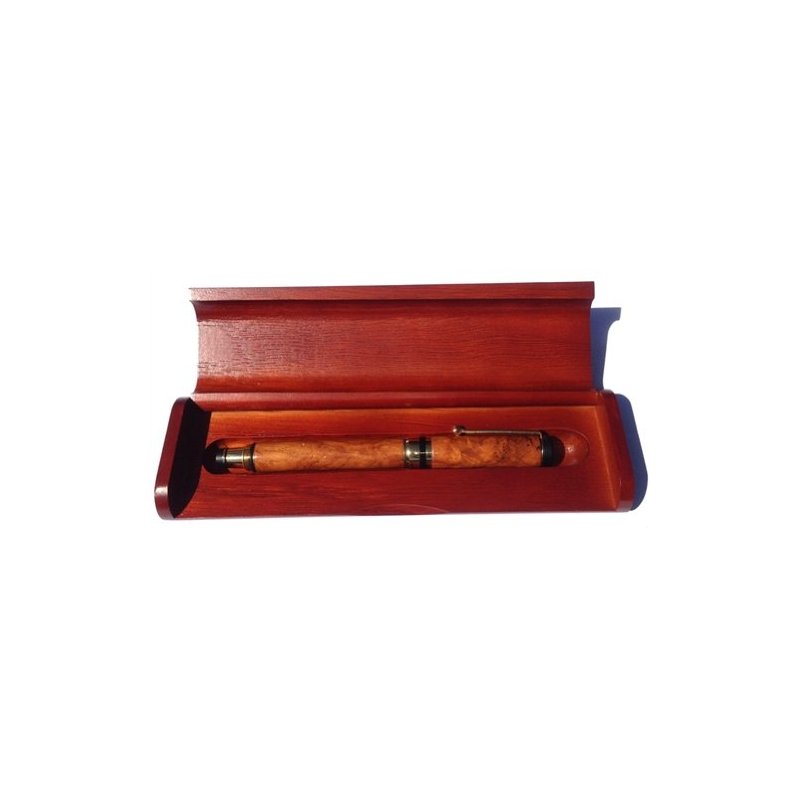 This gift box has a stained color rosewood finish. It is made from hardwood that has been stained and is ideal for holding one medium size fine writing instrument. Engaving services available. Contact us for details.