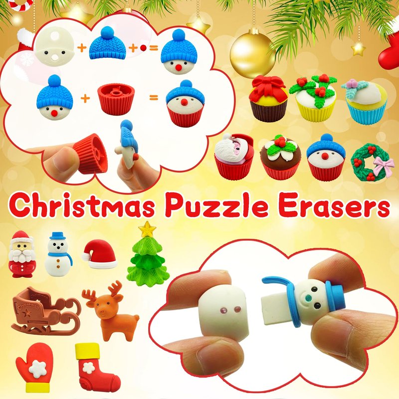 - Puzzle Pencil Erasers:30 Pack 3D Christmas Erasers have a realistic and cute shape,each one can be taken apart and reassembled,it's a fun puzzle toys.