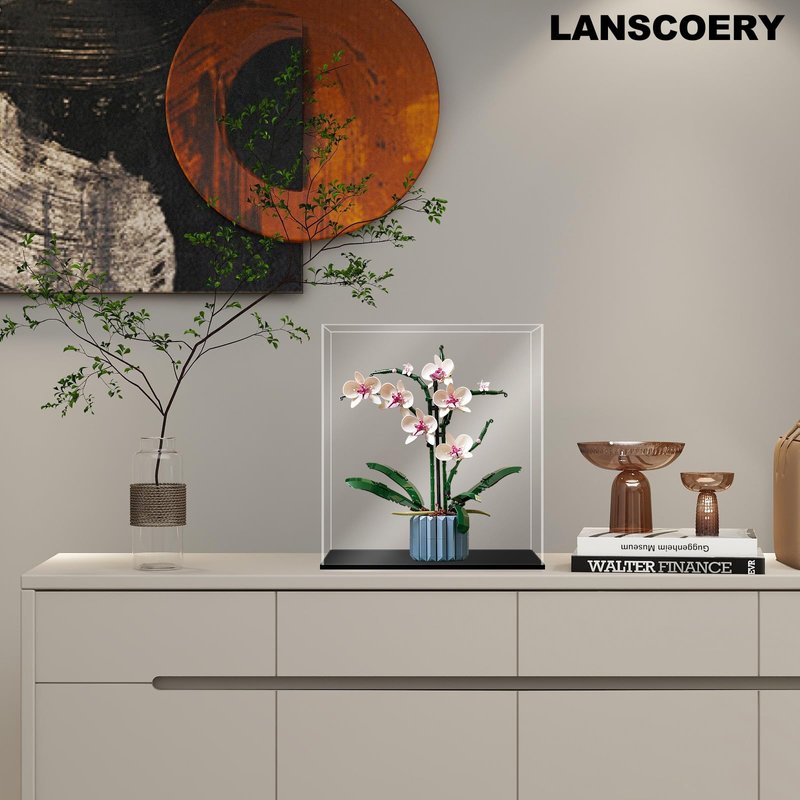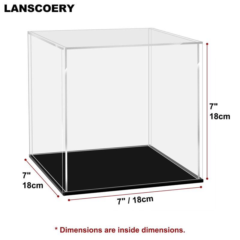 LANSCOERY Acrylic Display Case, Assemble Showcase Display Box for Collectibles, with Dustproof & Seamless Display Design, 7x7x7inch Black Base
