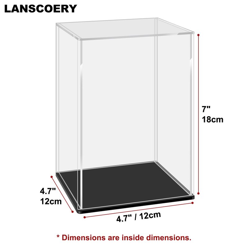 LANSCOERY Acrylic Display Case, Assemble Small Showcase Display Box for Collectibles, with Dustproof & Seamless Display Design 4.7x4.7x7inch Black Base
