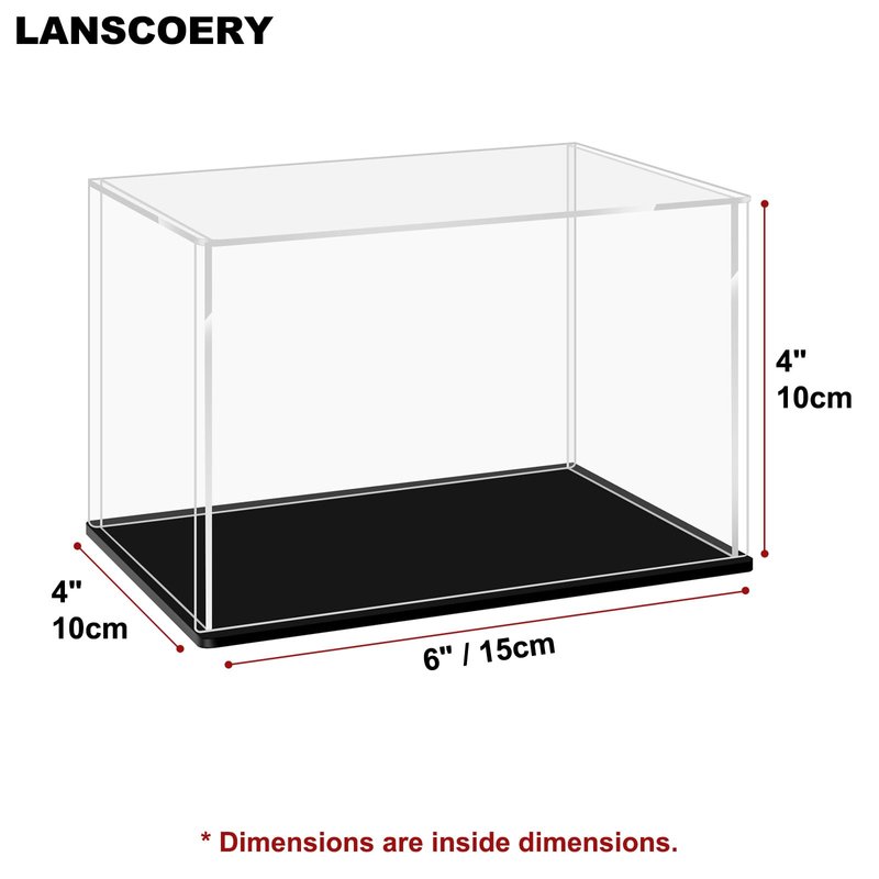 LANSCOERY Clear Acrylic Display Case, Assemble Small Display Box Stand with Black Base, Dustproof Protection Showcase for Collectibles Memorabilia Figurines (6x4x4inch; 15x10x10cm)