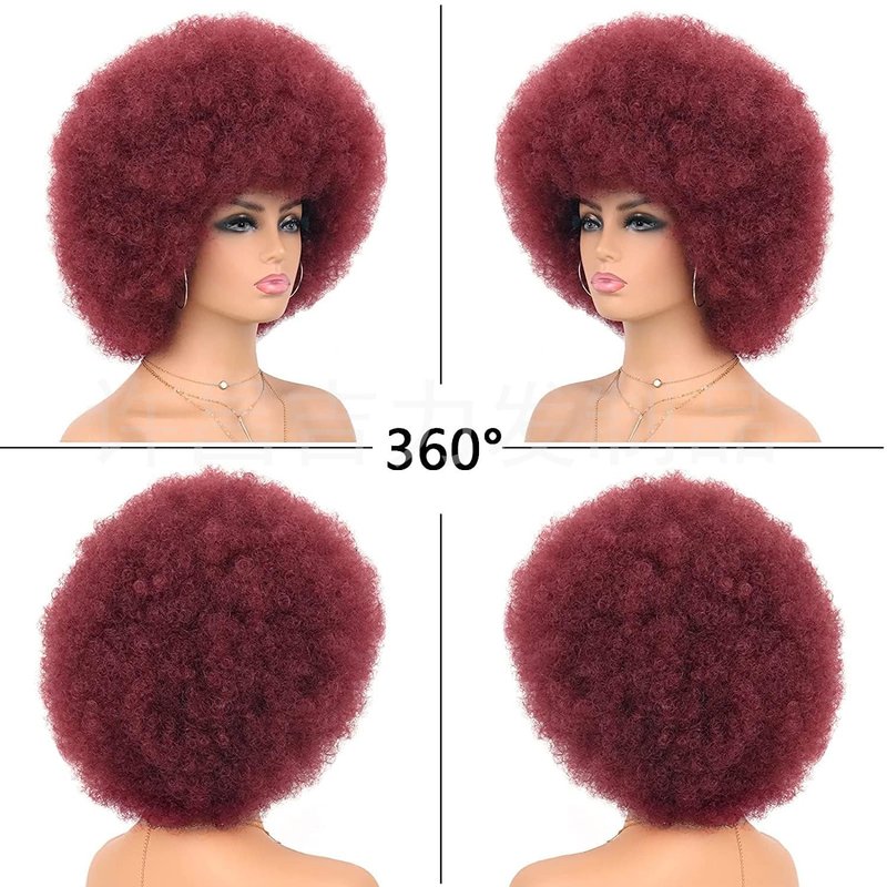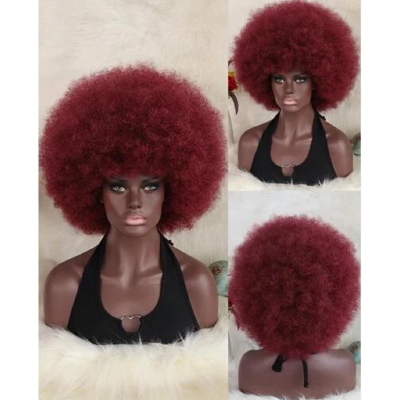 LANSHA 70s Afro Kinky Curly Wigs With Bangs for Black Women Men,Soft Wine Red Bug Color Preium Synthetic Fibers Big Bouncy Afro wigs,Nature Looking LightWeight Afro Puff Wig For Daily Party Use
