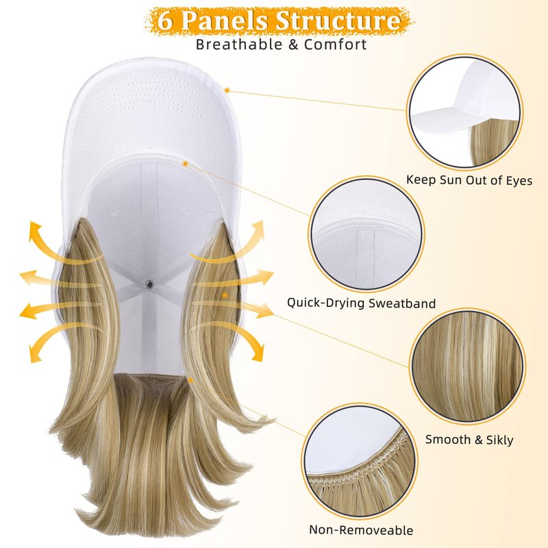 - 【Create A Stylish Look】This hat with hair extensions is very nice for casual day to day wear.You don't have to worry about the sun,then go shopping or other activities when you wear this wig hat.Also,perfect for cancer patients and women with medical hair loss,it can make you confident and shinning!Also will be nice gifts for your friends and families