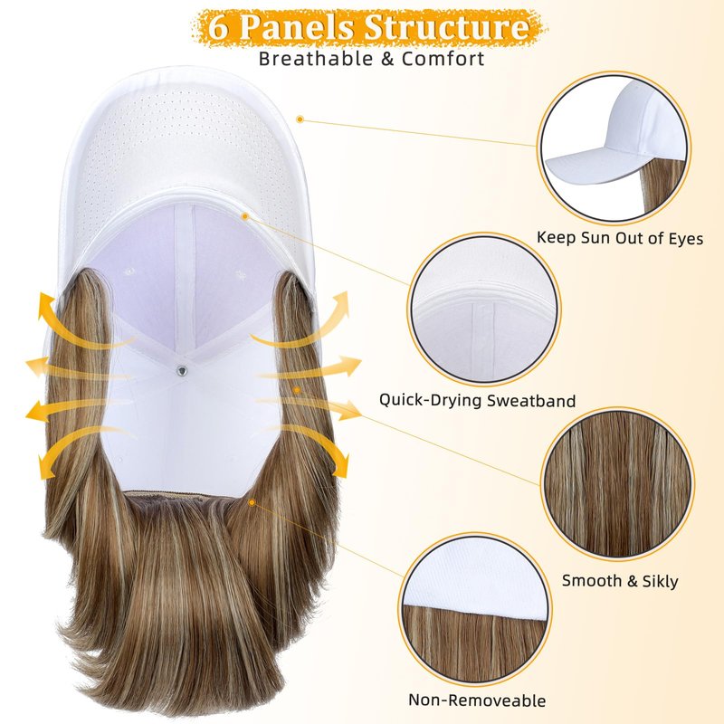 - 🌞【Create A Stylish Look】This hat with hair extensions is very nice for casual day to day wear.You don't have to worry about the sun,then go shopping or other activities when you wear this wig hat.Also,perfect for cancer patients and women with medical hair loss,it can make you confident and shinning!Also will be nice gifts for your friends and families.