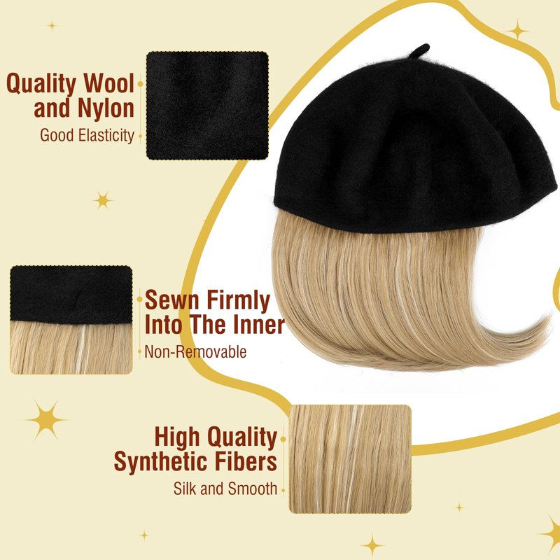 - 【Specification & Material】Lansigreen exquisite berets hat are made with the right blend of premium wool and polyester.This results in a nice-fitting,comfortable,and breathable beret.The hairpiece made from high quality synthetic fibers which looks so silk and smooth like real hair.The hat wig total length is 12",the hairpiece is 8".Style it all year round to flaunt your look.