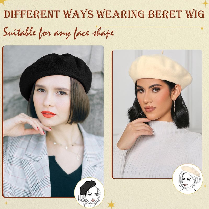 - 【Gift-Worthy Choice】Our beret hat wig is perfect for any occasion,from casual outings to formal events,elevate your look effortlessly.The beret hat with hair attached can be a excellent gift for Halloween,Christmas,Thanksgiving Days,Mother's Day,Dating,Weddings,Party,Birthday,New Year and Other Event.