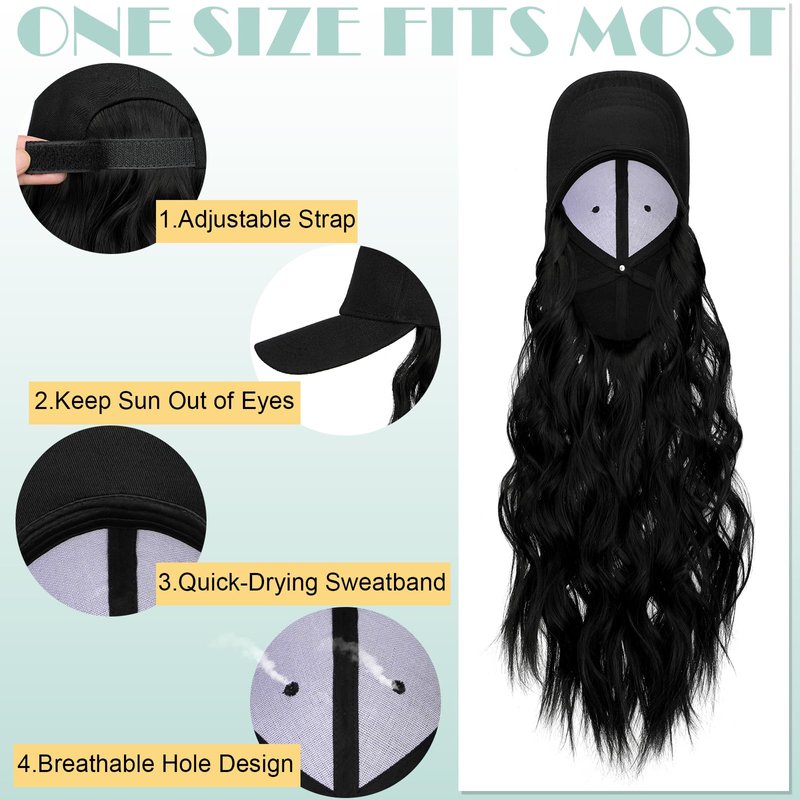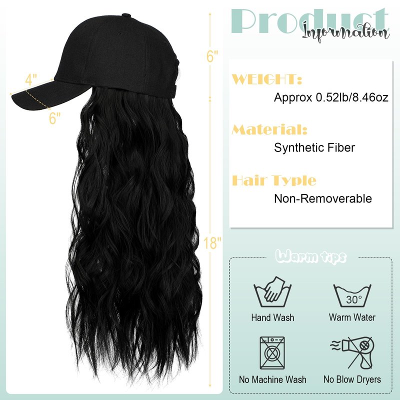 - 【Specification & Material】The hat wig total length is 24";The hairpiece is 18";Weight about 8.46 oz.Made of 100% high-quality synthetic fibers.Soft touch like natural real hair.The natural wavy hair combined stylish baseball cap change your style and become more confident and charming.Also protects you from sun burn better