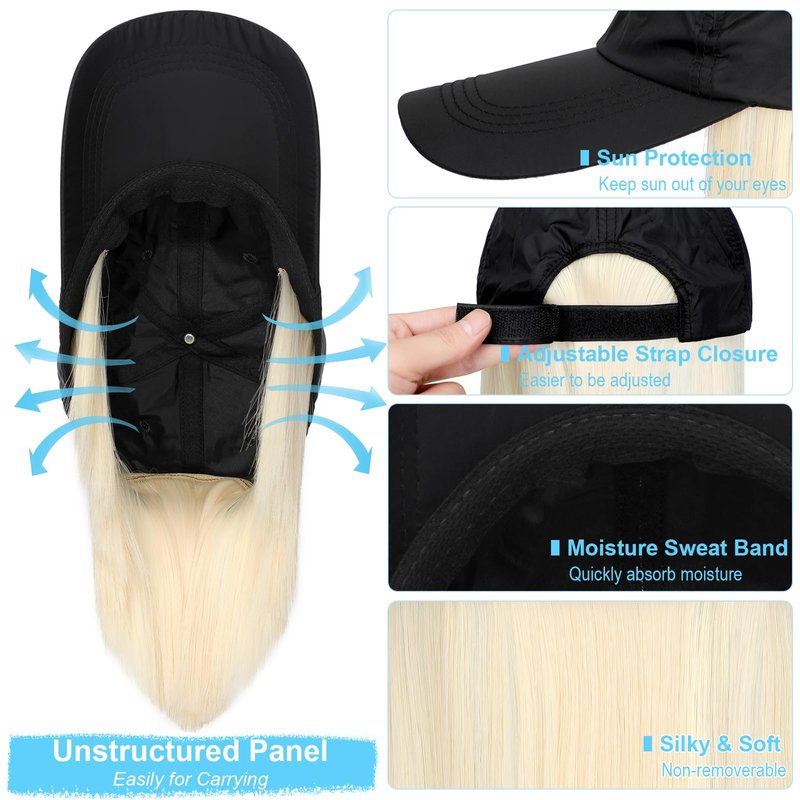 - 【Specification & Material】Lansigreen baseball cap is made of high-quality,skin-friendly,soft,quick-drying polyester fabrics.The hairpiece made from high quality synthetic fibers which looks so silk and smooth like real hair.The hat wig total length is 11",the hairpiece is 5".Our fast dry hat wig is completely soft and never feels hard while being worn.Also protects you from sun burn better