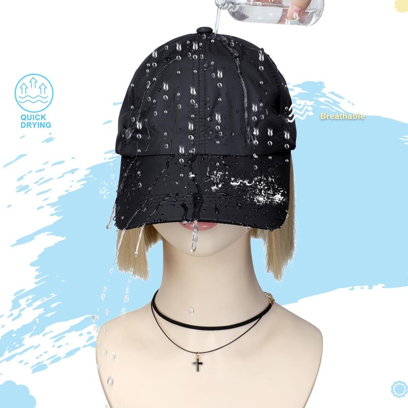 Lansigreen Quick Dry Hat with Hair Extensions Hat Wig Lightweight Waterproof Baseball Cap Attached 11" Short Straight Hairpiece Synthetic for Women Bleach Blonde