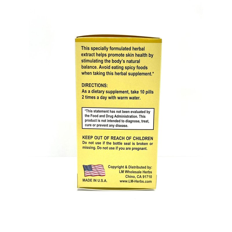 This specially formulated herbal extract helps promote skin health by stimulating the body's natural balance. Avoid eating spicy foods when taking this herbal supplement.